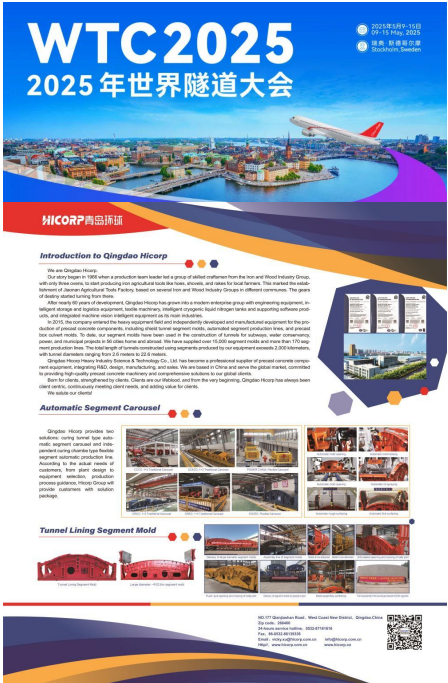 2025 年 5 月 9 日至 15 日,由國際隧道和地下空間協(xié)會(ITA)與瑞典巖石工程協(xié)會聯(lián)合主辦的 2025 年世界隧道大會(WTC2025)在瑞典斯德哥爾摩盛大舉行。青島環(huán)球重工科技有限公司作為中國隧道裝備領(lǐng)域的領(lǐng)軍企業(yè),受邀參加此次盛會,展示了公司在盾構(gòu)管片模具、裝配式地鐵站構(gòu)件模具等工程裝備制造領(lǐng)域的卓越成果,贏得了國際同行的廣泛關(guān)注與贊譽。